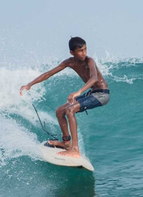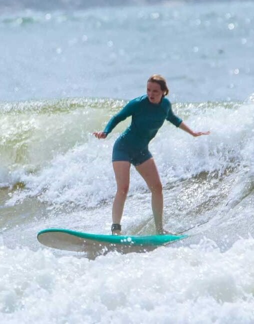 We will teach you to catch green waves and ride the face of the wave sideways instead of going straight in the white water.